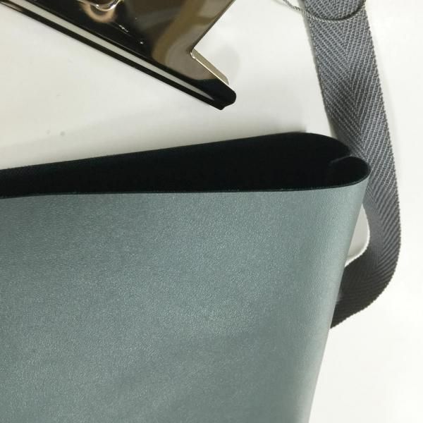 Saffiano leather-like synthetic material with delicate embossing. The fabric is firm and resilient.